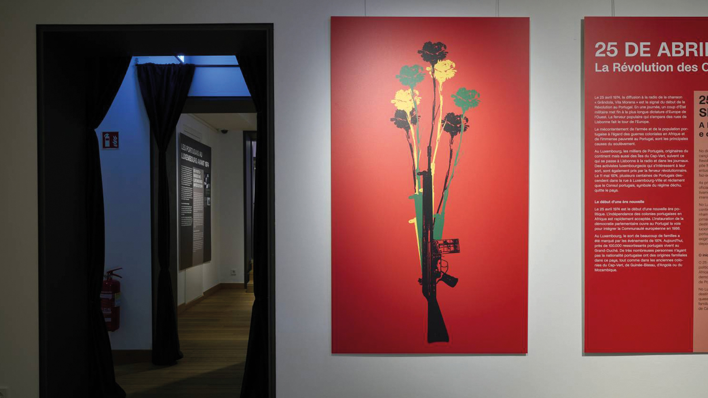 Le renversement de la dictature au Portugal, éclairé depuis une perspective luxembourgeoise, est au cœur de cette exposition que le Nationalmusée um Fëschmaart a présentée en avril 2024, exactement cinquante ans après la révolution des Œillets. Le Luxembourg compte aujourd’hui plus de 100 000 personnes dont le parcours de vie a été marqué par ces évènements — des personnes de nationalités et d’origines diverses, issues du Portugal ou des anciennes colonies portugaises.