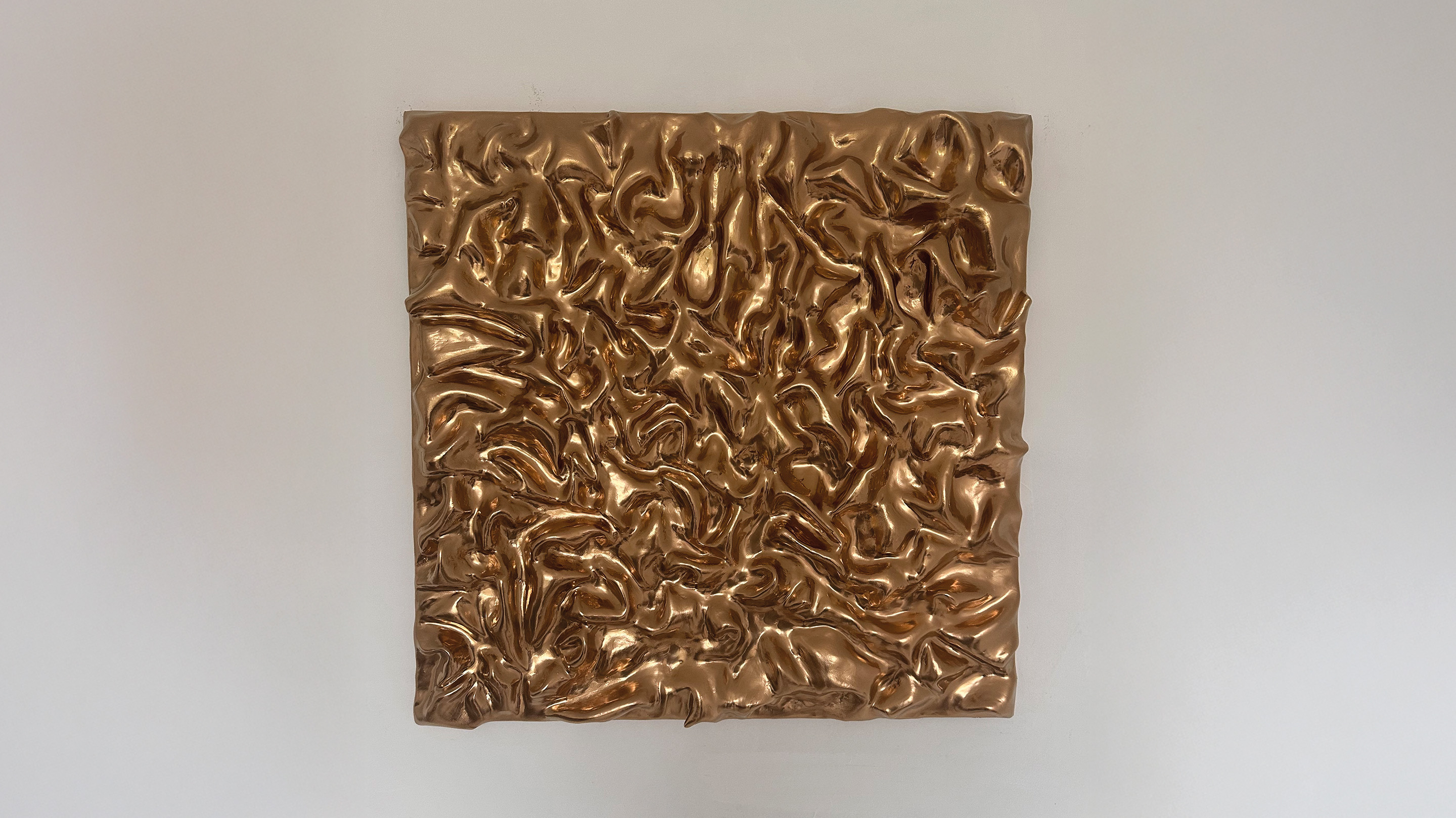 Son travail se distingue par une palette minimaliste et apaisante: noir, blanc, beige et gris, rehaussés de touches chromées en or et argent. Ces accents métalliques captent la lumière et confèrent à ses œuvres une élégance intemporelle. Elle joue avec les contrastes et les textures pour créer une harmonie visuelle qui structure l’espace.
